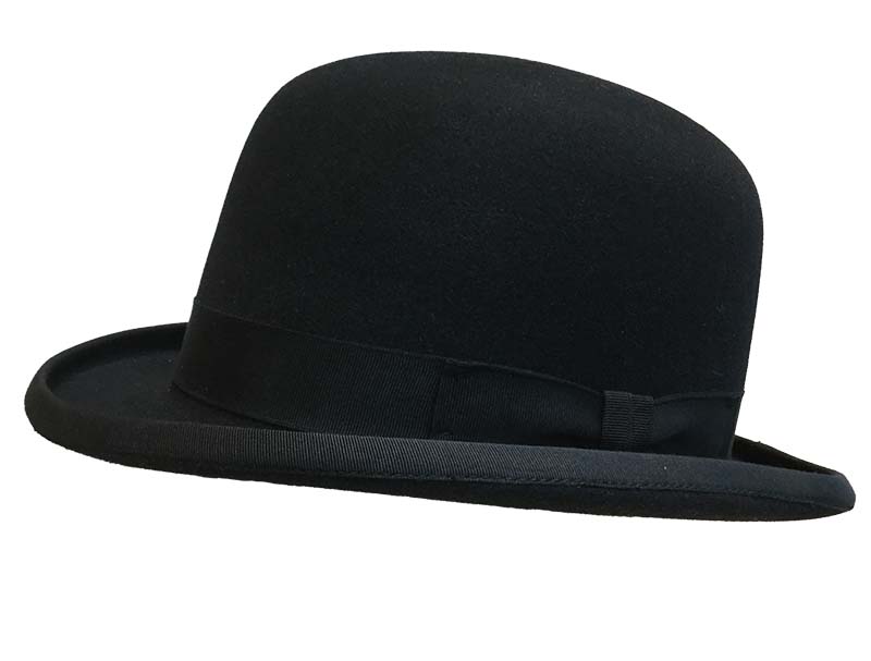 100% fur felt. Made in Canada by Magill. Size: 6 7/8 - 7 3/4. Color: black, brown. Classic derby shape.