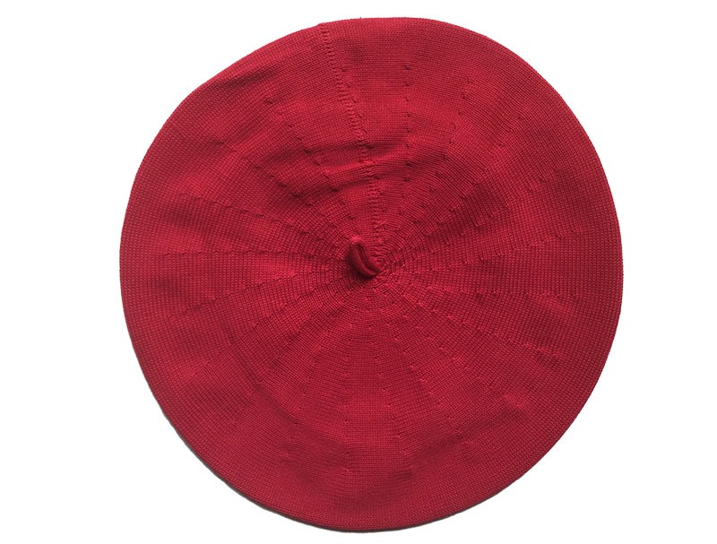 100% cotton. Made in Canada by Parkhurst. One size fits all. Colors: black, navy, red. Approximate diameter: 10 1/2".